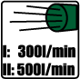 przepływ powietrza I: 300 l/min, II: 500 l/min